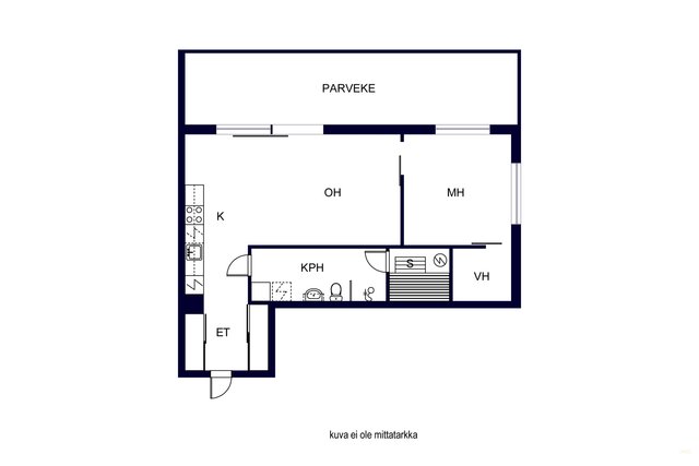 2h + avokeittiö + kph + sauna + vh + lasitettu parveke