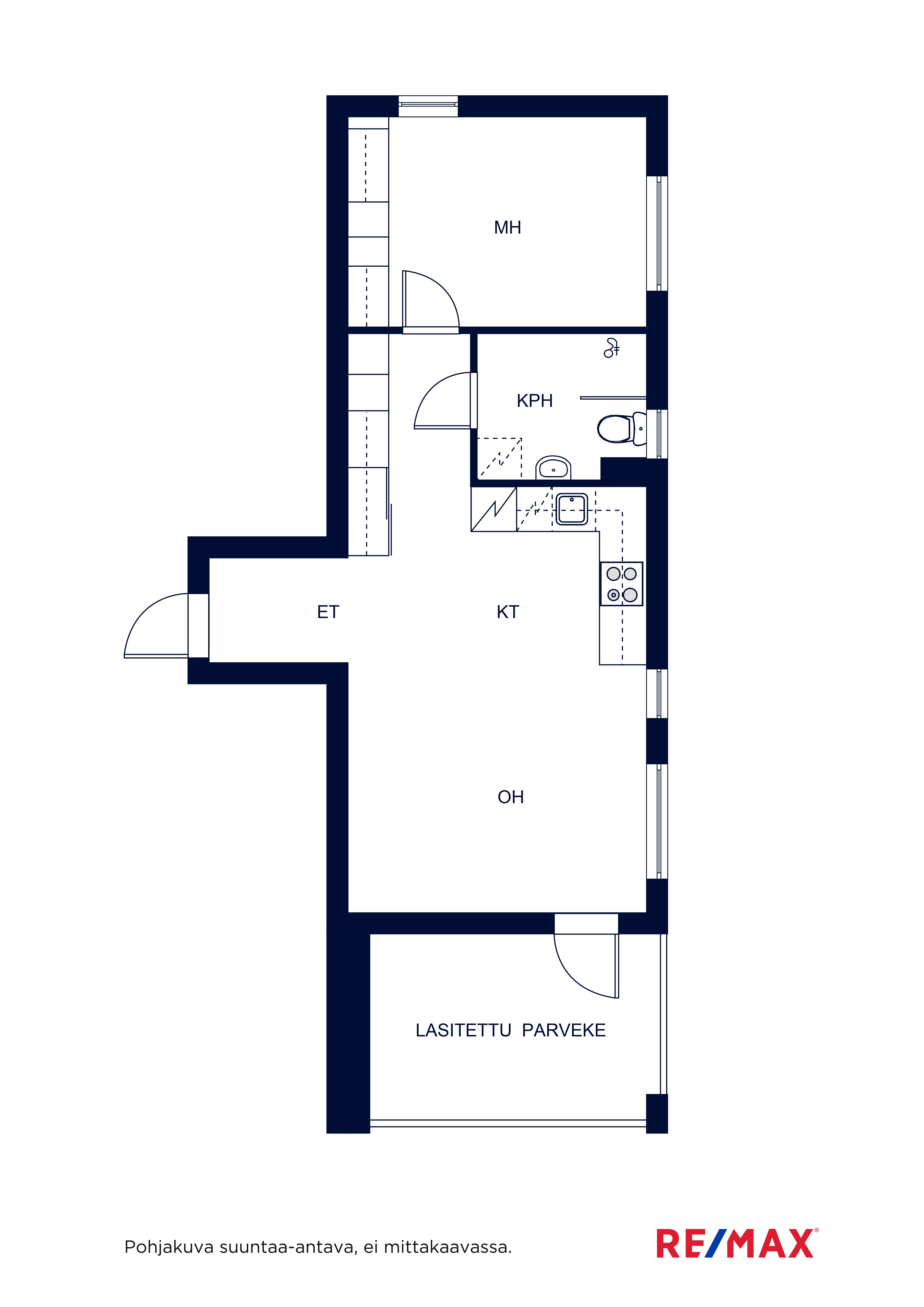 - Jääkaappipakastin, liesi, liesituuletin, uuni, ja astianpesukone