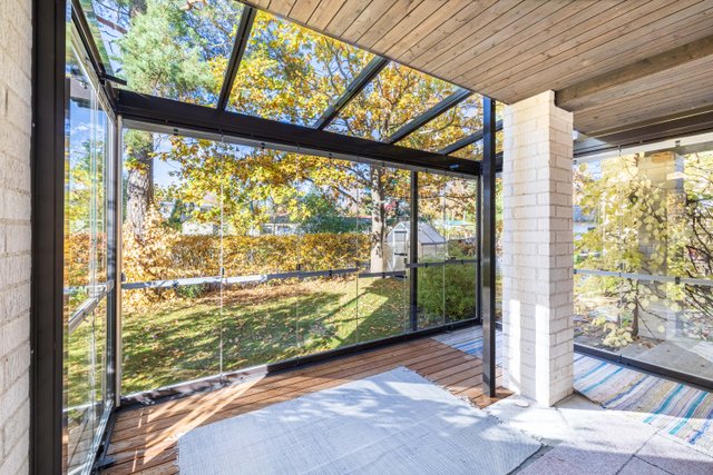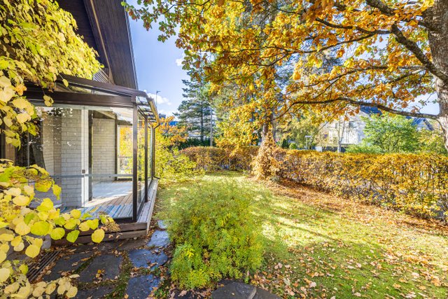 Lasitettu patio toimii viihtyisänä oleskelutilana, ja länteen suuntautuva parveke tarjoaa upeat puitteet ilta-auringosta nauttimiseen. Pihalla on myös kasvihuone viherpeukaloille ja riittävästi tilaa trampalle tai sulkiskentälle.