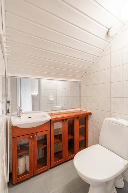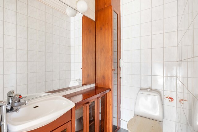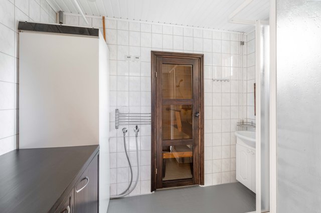 - Suihkukaappi, lattialämmitys, pesukoneliitäntä, suihku, ja pesuallas