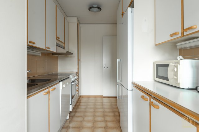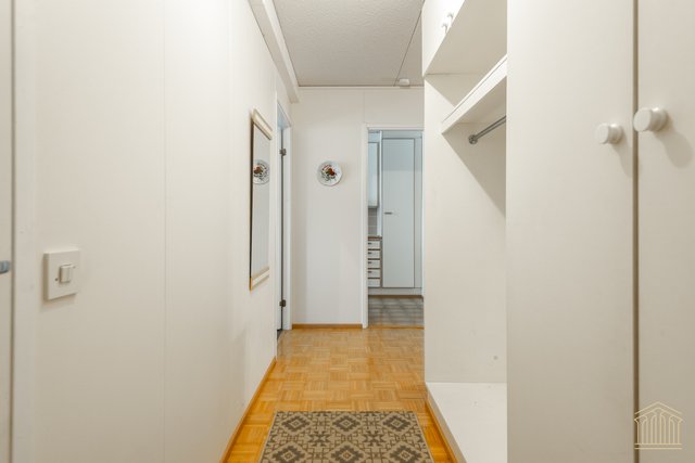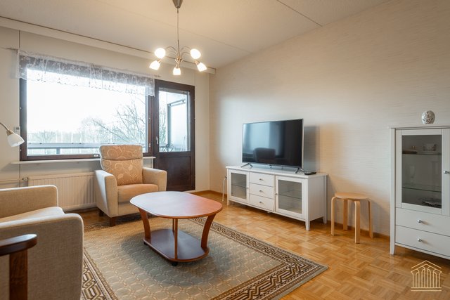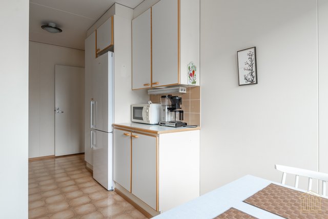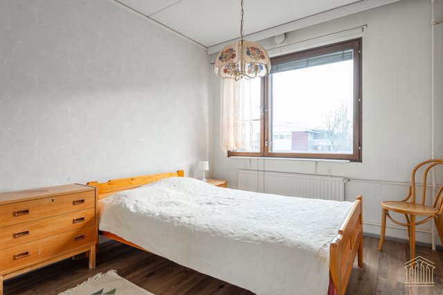 Asunto on pääosin alkuperäisessä kunnossa, mutta hyvin siisti. Eteisen ja olohuoneen lattiat ovat parkettia, makuuhuoneessa on laminaattilattia ja keittiössä on muovimatto. Kylpyhuone on tilava, lattiassa on muovimatto ja seinissä laatoitus. Oma sauna on mukava lisä.