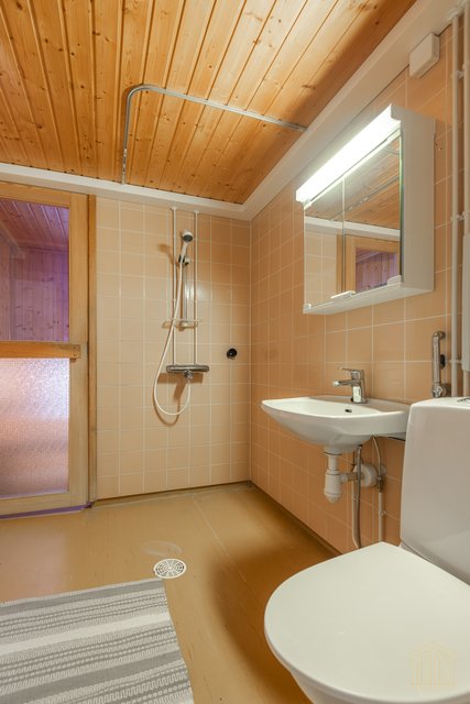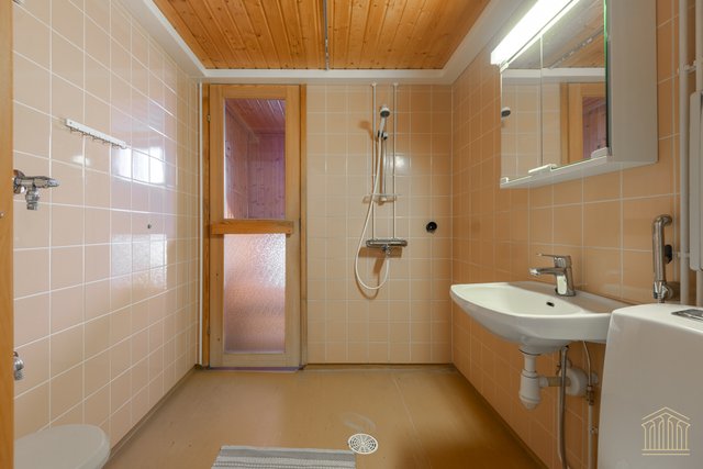 - WC-istuin, suihku, pesukoneliitäntä, ja peilikaappi