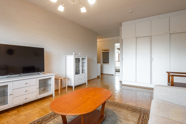 - Olohuoneesta käynti lasitetulle parvekkeelle. Olohuoneessa kaapistot.