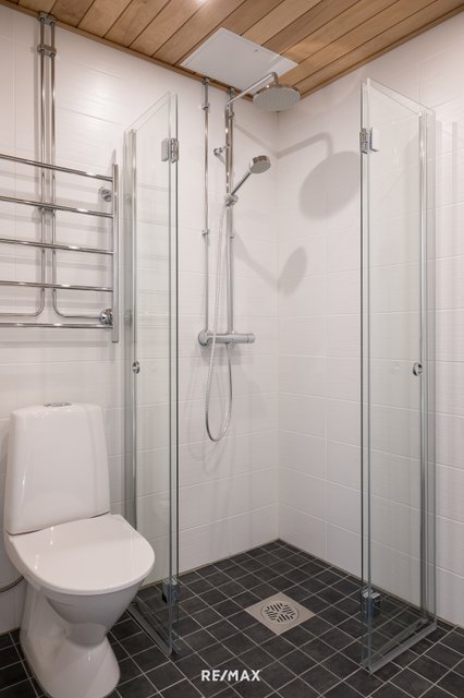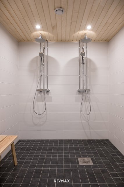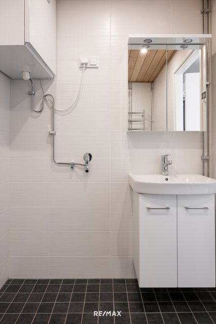 - WC-istuin, suihku, suihkuseinä, pesukoneliitäntä, lattialämmitys, peilikaappi, pesuallas, ja allaskaappi