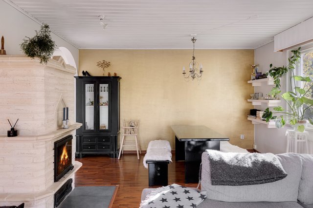 - Olohuoneessa varaava takka, joka on asennettu vuonna 2004.