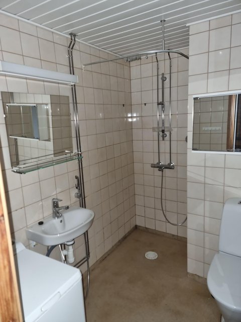 - WC-istuin, suihku, pesukone, peilikaappi, pesukoneliitäntä, peili, ja pesuallas