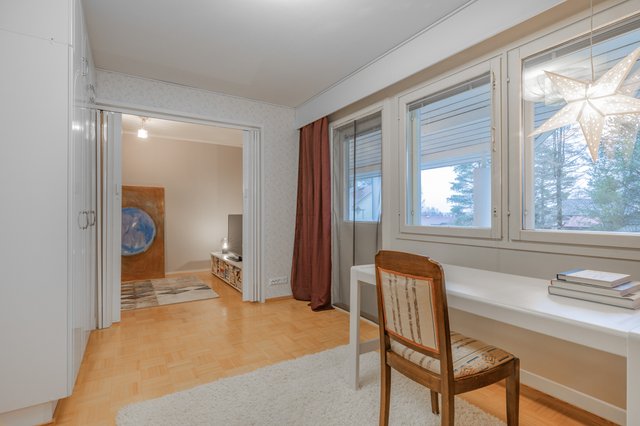 - Yläkerran pienempää huonetilaa, jonka lattiapinta-ala on n. 11 m2, ei lasketa mukaan asuinpinta-alaan.