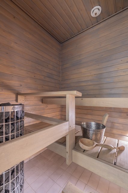 - kiuas ja saunan ovi uusittu v. 2016, sauna sävytetty vaaleanharmaaksi