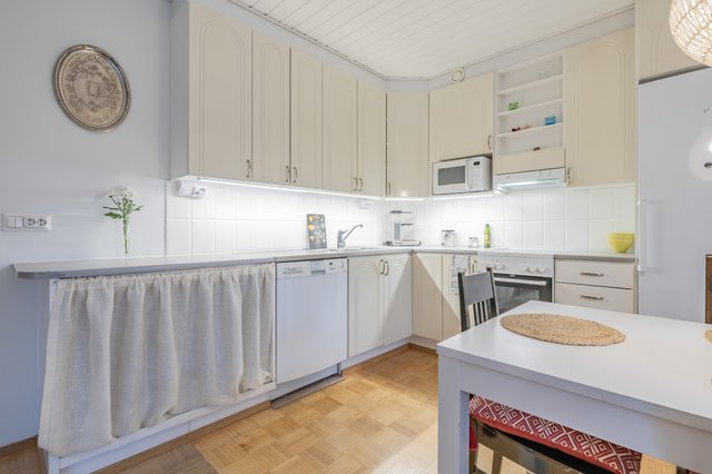 - Keittiön muutostyö avokeittiöksi v. 2016, samalla muutettu valaistus led-valaistukseksi. Välitilan laatat ja laminaattitasot maalattu.