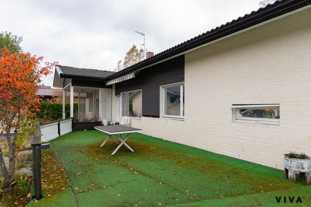 Harvoin tarjolla yksitasoinen omakotitalo 240 m²/302 m² jossa kahden auton autotalli!