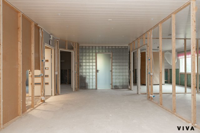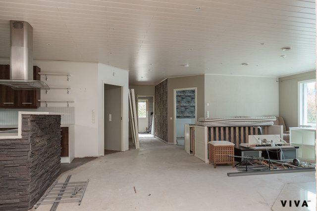 Tämä tilava yksitasoinen 240 m²/302 m²:n omakotitalo ja kahden auton lämmin autotalli tarjoaa runsaasti tilaa suuremmallekin perheelle. Talo on valmistunut vuonna 2009, mutta rakentaminen on jäänyt kesken, ja kohteessa on ollut laaja vesivahinko. Tämä tarjoaa mahdollisuuden remontoida koti täysin oman maun mukaan ja nostaa sen arvoa merkittävästi.