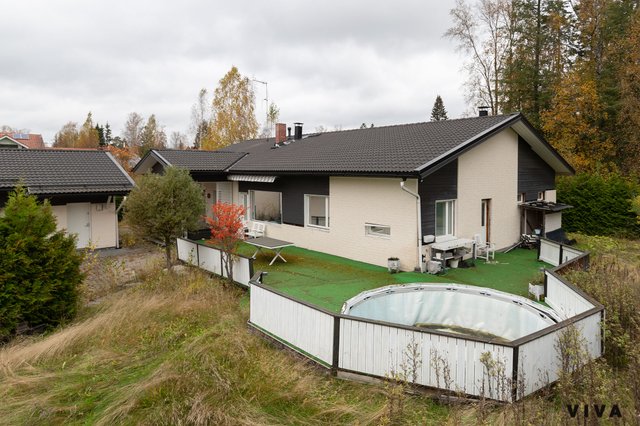 Talon edustalla on tilava terassi, jossa paikka uima-altaalle. Tontti on oma 1 796 m² ja tarjoaa runsaasti oleskelutilaa.