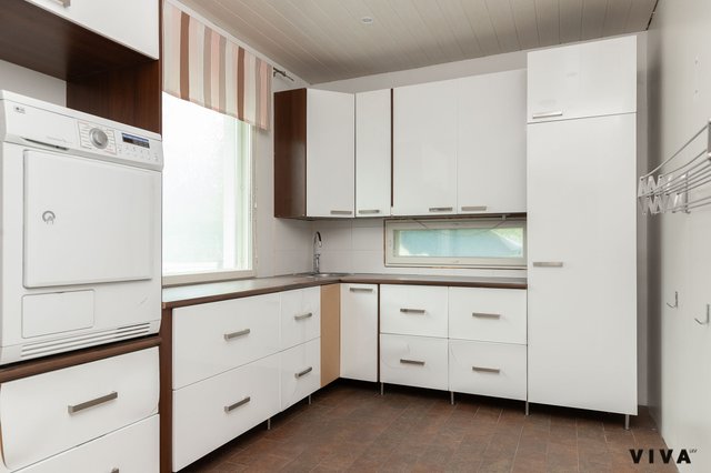 - Keskeneräinen. Pesukoneliitäntä ja kaappi- ja työskentelytilaa. Vesipiste. Kodinkoneiden ja sähkölasitteiden toimivuudesta ei ole tietoa.