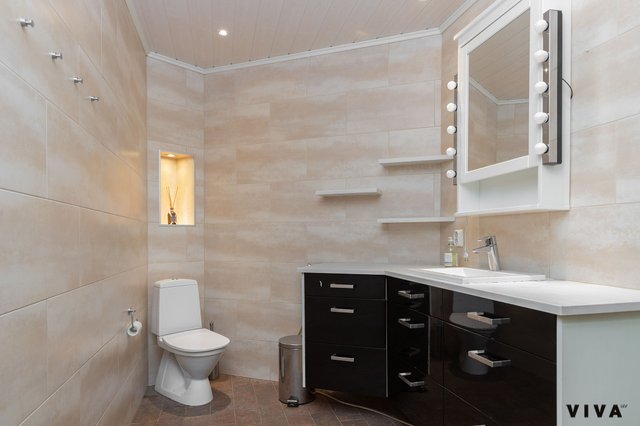 6h, k, khh, sauna, 2x kph, wc, aulatila, pukuhuone, 2x eteinen, tekninen tila + kahden auton autotalli