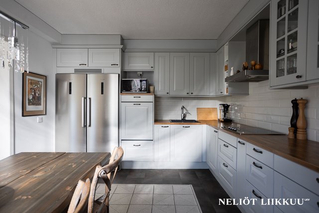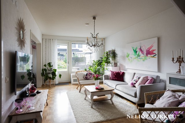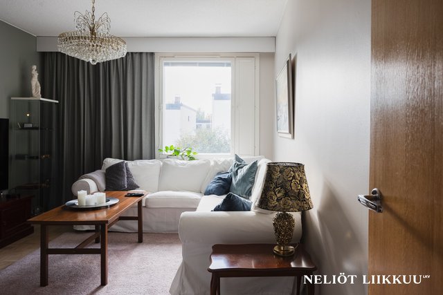 Tämä huoneisto tarjoaa runsaasti tilaa ja toimivia ratkaisuja niin suuremmalle perheelle kuin tilaa arvostavalle pariskunnallekin.