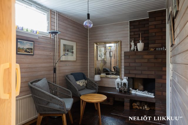 Takkahuone luo tunnelmaa ja tarjoaa mahdollisuuden rentoutumiseen tai työskentelyyn, ja oma sauna tuo arkeen ripauksen ylellisyyttä. Säilytystilaa on runsaasti, ja asumismukavuutta lisää kaksi vaatehuonetta sekä erilliset WC:t.