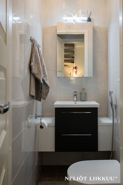 - Suihku, pesukoneliitäntä, ja lattialämmitys