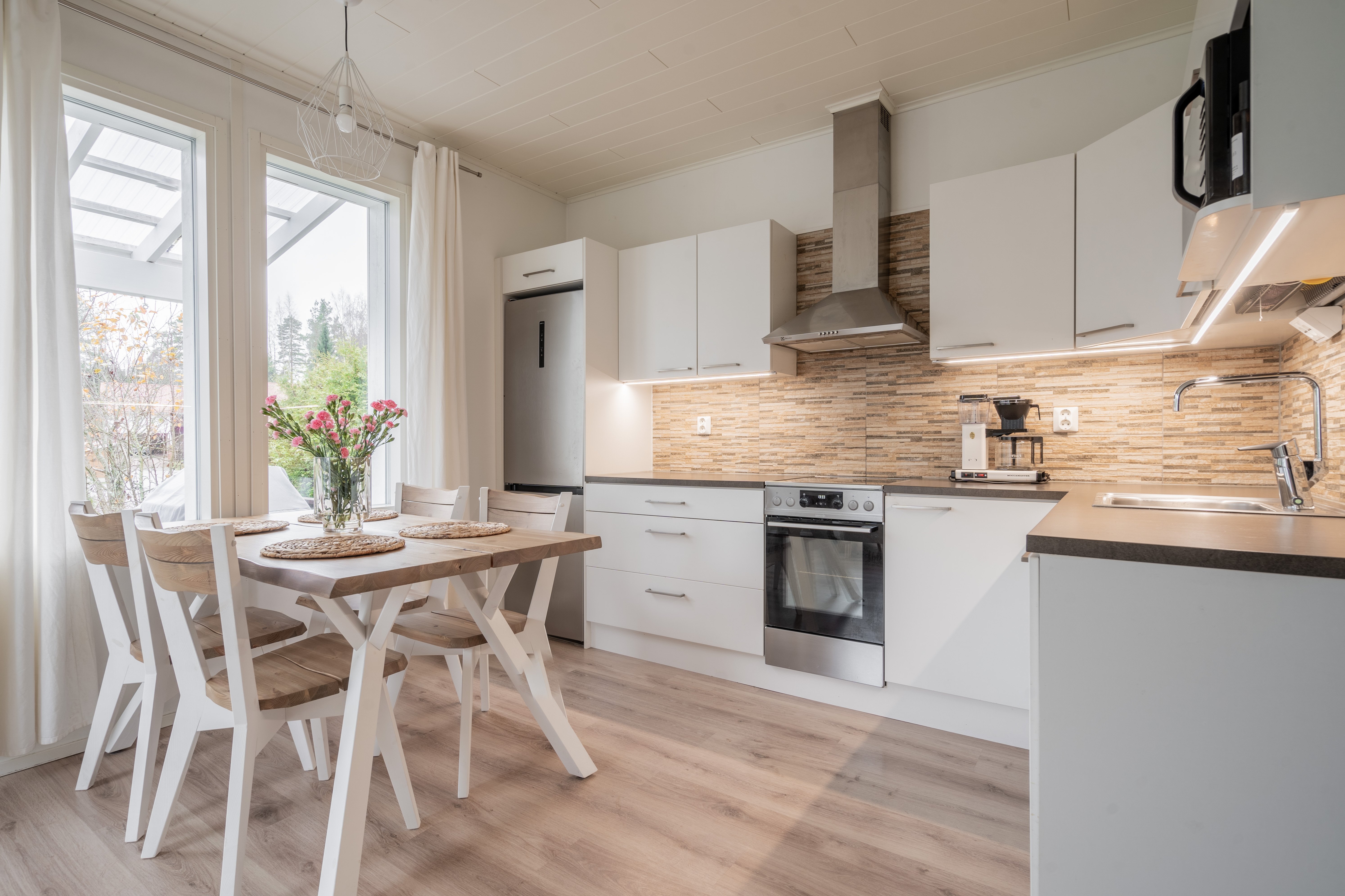 - Liesituuletin, uuni, astianpesukone, ja jääkaappipakastin