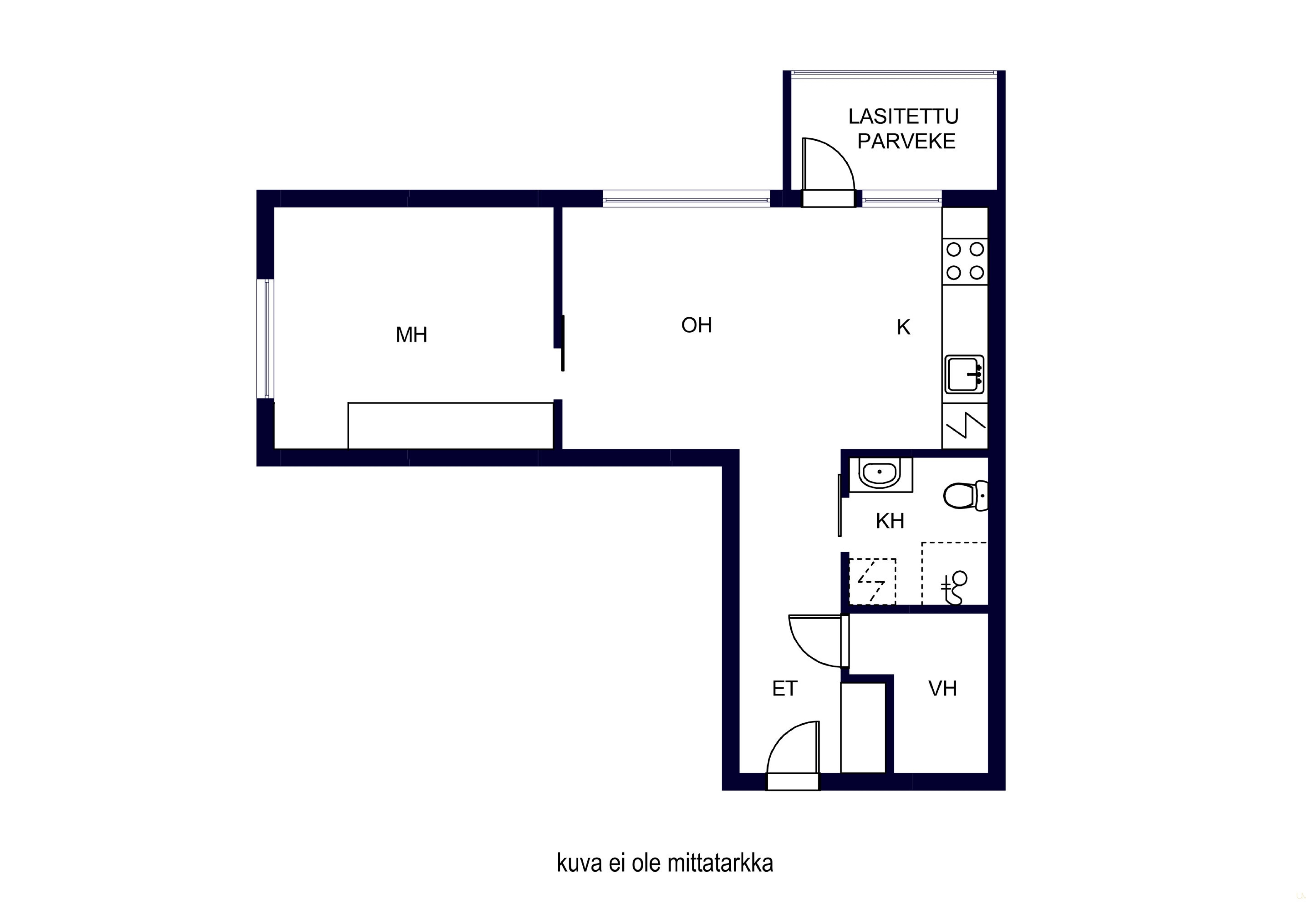 2h + avokeittiö + kph + vh + lasitettu parveke