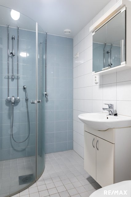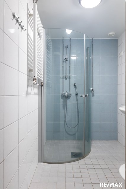 - WC-istuin, suihku, pesukoneliitäntä, bidee-suihku, allaskaappi, ja peilikaappi