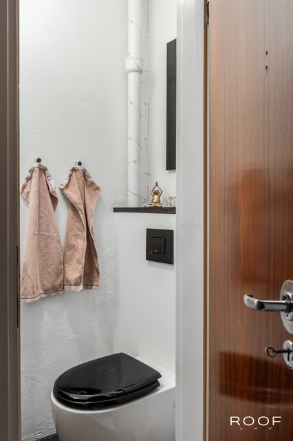 - Wc istuin Hana Allas Allaskaapisto WC: seinällä iso peili Bidee suihku