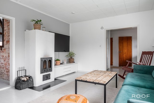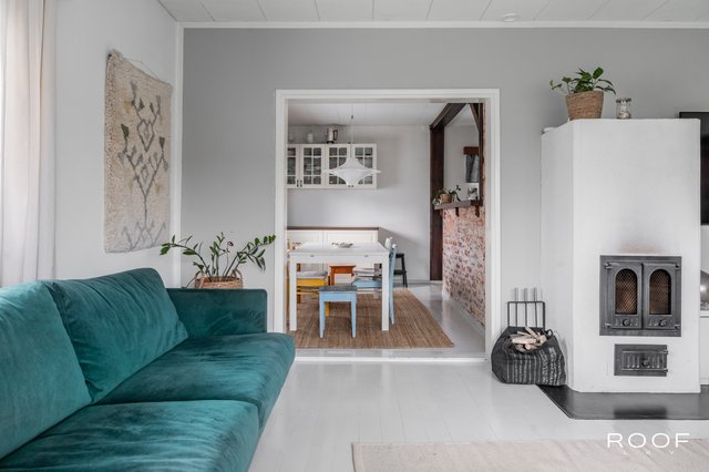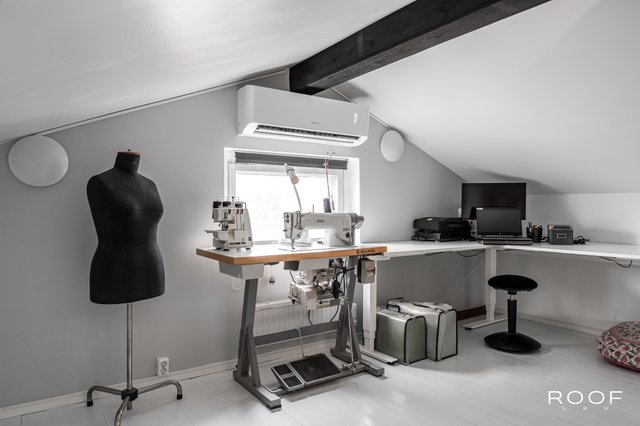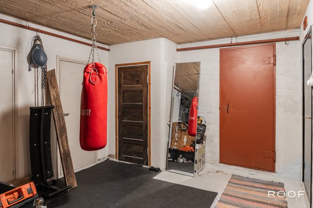 - Kellari 100m2 + 100m2 keskikerroksen asuintilat + 60m2 käyttöullakko Maantasakerroksessa viralliset asuintilat, lisäksi käyttöullakko, josta tehty huoneita, ja kellari, jossa toinen olohuone, kylpyhuone, sauna ja varastotilaa.