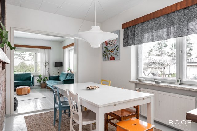 Tämä viehättävä omakotitalo Espoon Laaksolahdessa tarjoaa tilaa ja mukavuutta perheelle, joka arvostaa omaa rauhaa ja luonnonläheisyyttä. Vuonna 1961 rakennettu talo sijaitsee omalla tontilla ja kuuluu Asunto Oy Espoon Riihirinne 4 -taloyhtiöön, jossa on vain neljä asuntoa, mikä takaa rauhallisen asuinympäristön.