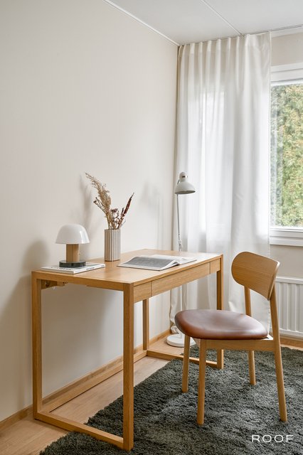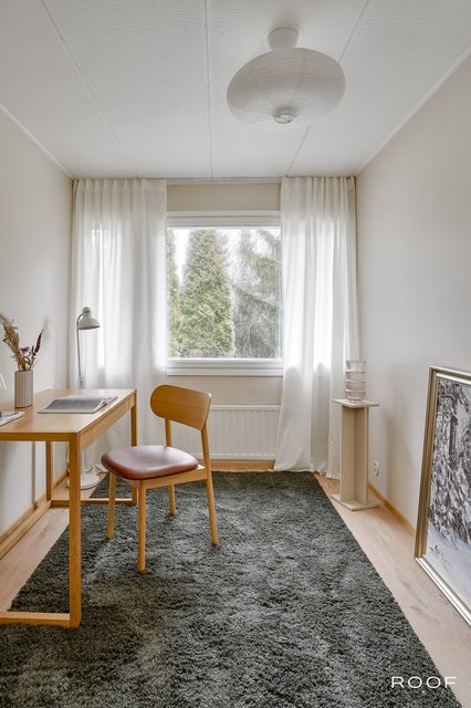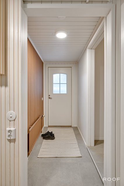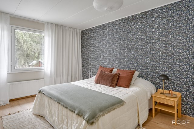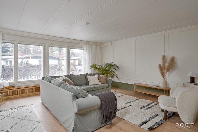 Ammattilaisen suunnittelema pintaremontti näkyy materiaalien yksityiskohdissa ja tilojen yhtenäisessä tyylissä. Talossa on kolme makuuhuonetta, joista päämakuuhuone on todella hyvän kokoinen. Isossa olohuoneessa on mukavasti tilaa kalusteille ja perheen yhteisille hetkille. Tyylikkään keittiön yhteydessä on erillinen ruokailutila sekä käytännöllinen ruokakomero, "pantry". Valoisassa kylpyhuoneessa on myös talon toinen wc. Asuintilojen lisäksi löytyy lämmin autotalli sekä lämmin varasto / tekninen tila.