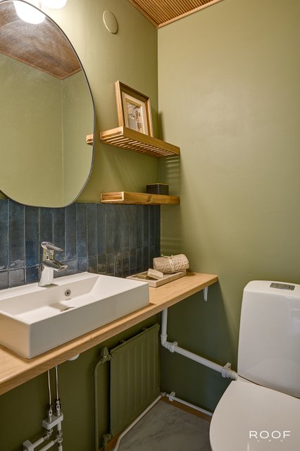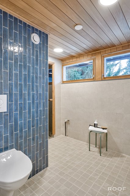- Lattialämmitys (sähkö), wc-istuin, suihku, suihkuseinä, peili, ja allaskaappi