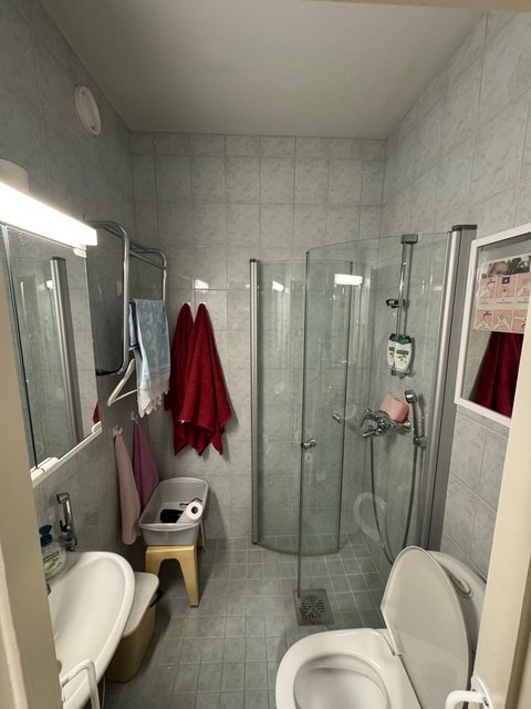- 2008 putkiremontin yhteydessä uusittu kph/wc. Suihku, kääntyvät suihkuovet, pesukoneliitäntä, pesuallas, pyyhekuivausteline, bidee, wc-istuin.