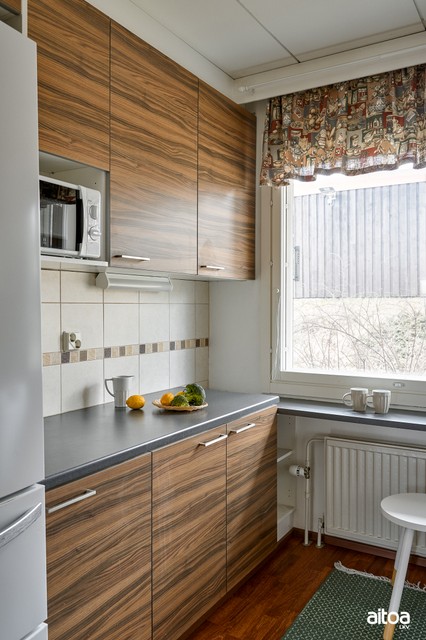 Asunto on rakennettu vuonna 1976 ja sen 63 neliötä tarjoavat mukavasti tilaa. Asunnossa on tilava olohuone, käytännöllinen keittiö, makuuhuone, vaatehuone, kylpyhuone sekä oma sauna. Olohuoneesta on käynti aidatulle takapihalle, jossa osin terassialue ja osin nurmikko tarjoavat mukavan paikan rentoutua ja nauttia ulkoilmasta. Pihalla on myös pieni kasvimaa ja tuijia, jotka tuovat vehreyttä ja yksityisyyttä.