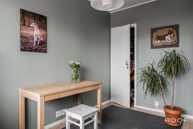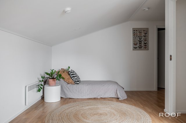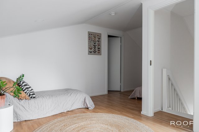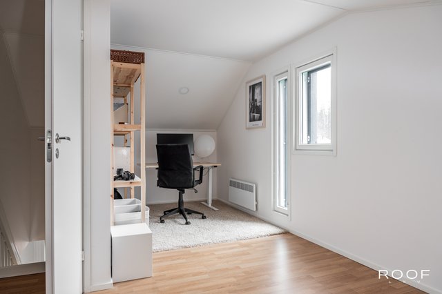 - Yläkerran ikkunallisella käyttöullakolla on hyvin tilaa esim. työpisteelle tai vieraiden majoitukseen, lisäksi käyttöullakossa on iso vaatehuone/säilytystila. Lattia laminaattia, seinät maalattu.