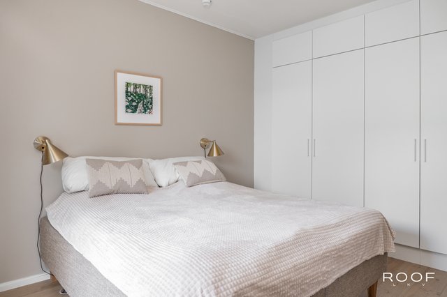- Seinät maalattu, lattia lankkumaista saarniparkettia. Kahdessa makuuhuoneessa kaapistot ja kolmannessa vaatehuone.