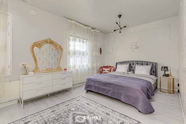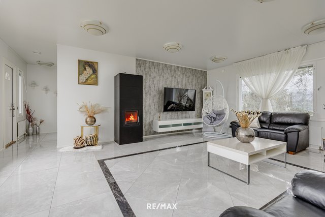 Talon sydämenä toimii olohuoneen kaunis varaava takka, joka luo lämpöä ja tunnelmaa. Lämpöä tuottaa myös energiatehokas ilmavesilämpöpumppu sekä sähköinen lattialämmitys. Kolme makuuhuonetta ja tilava olohuone tarjoavat runsaasti tilaa perheelle, ja käytännöllinen kodinhoitohuone helpottaa arjen askareita.