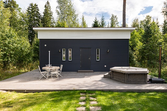 - Saunassa ikkunat. Pihasaunassa puukiuas.