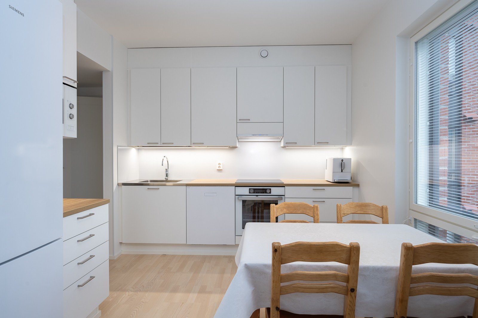 - Lisätietoja sisältyvistä varusteista: huoneistokohtainen ilmanvaihtokone, ilmalämpöpumppu, kaapistot, kiinteät valaisimet, sälekaihtimet/rullaverhot