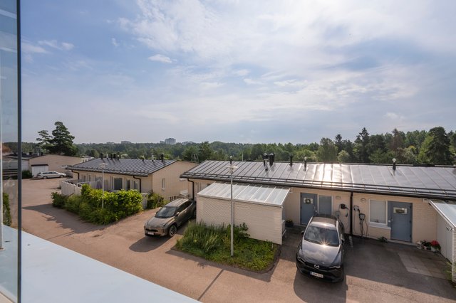 Asunnon pohjaratkaisu on suunniteltu perhe-elämän tarpeisiin, ja neljä makuuhuonetta jakautuvat kahteen kerrokseen. Alakerrassa sijaitsevasta päämakuuhuoneesta on käynti suoraan etupihan terassille, mikä tuo mukavaa lisätilaa kesäisin. Yläkerran olohuone on valoisa ja avara, ja sen jatkeena oleva lasitettu parveke avautuu itään. Keittiö on moderni ja hyvin varusteltu, tarjoten runsaasti laskutilaa ja säilytysratkaisuja.
