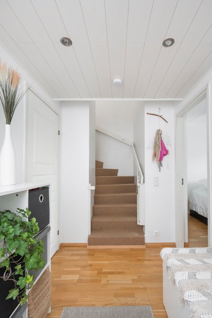 - Huoneistolla on kaksi kylmää varastoa huoneiston välittömässä läheisyydessä. Lisäksi alakerran 11,5m2 varastossa on rivistö kaappeja säilytykseen.