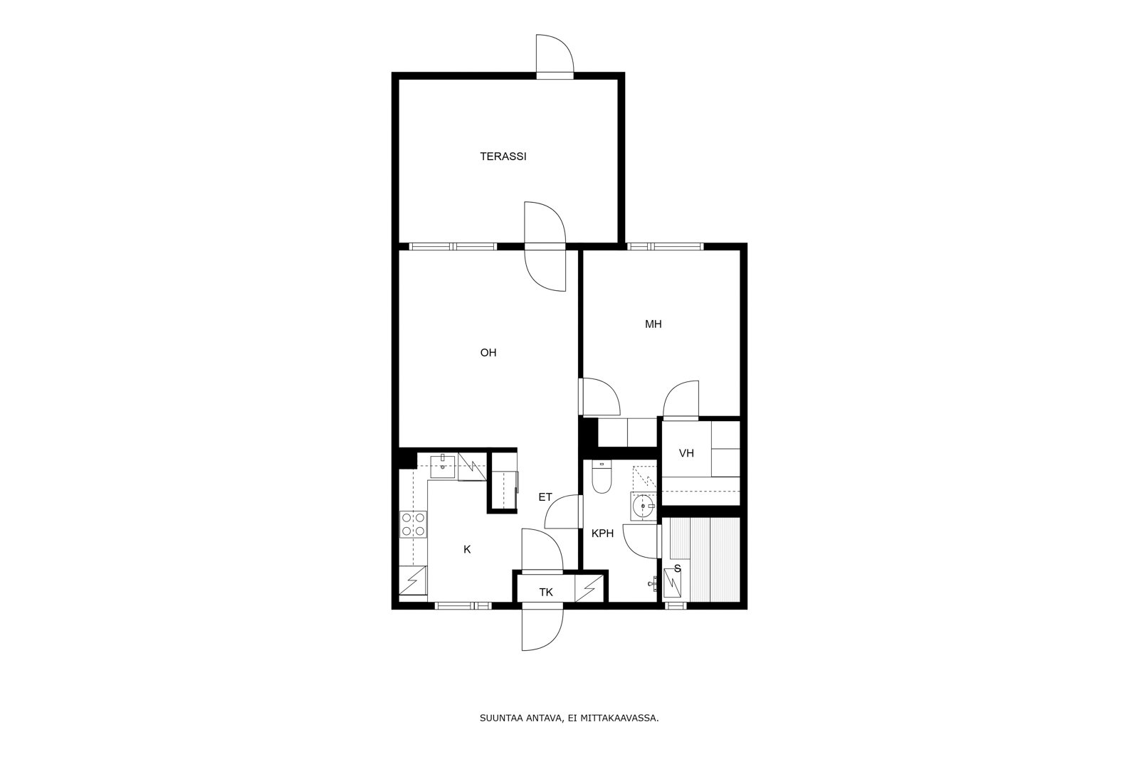 - Olohuoneesta on käynti terassille. SEINÄT: maalattu tapetti. LATTIA: parketti.