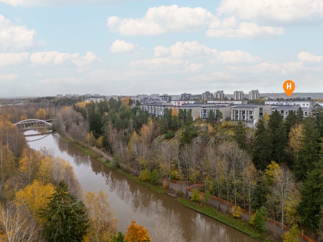 Asunto sijaitsee Viikinmäen kukkulakaupunginosassa, jossa pohjoisen luonnon tunnelma kohtaa kaupunkielämän mukavuudet. Kun astut sisään, tila huokuu rauhaa ja lämpöä, ja ikkunoista avautuu näkymä Viikinmäen luonnon ja kallioiden ympäröimään maisemaan.