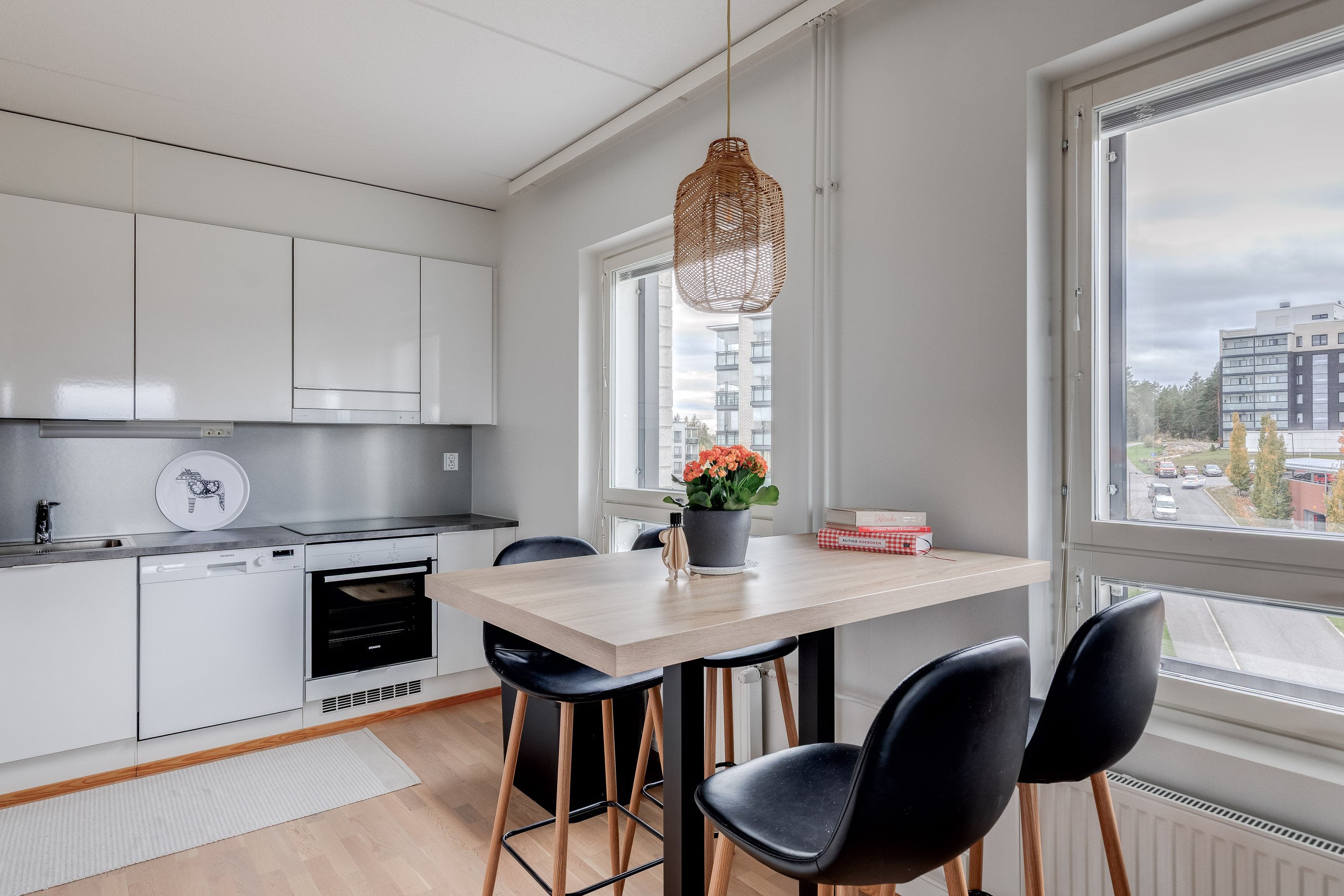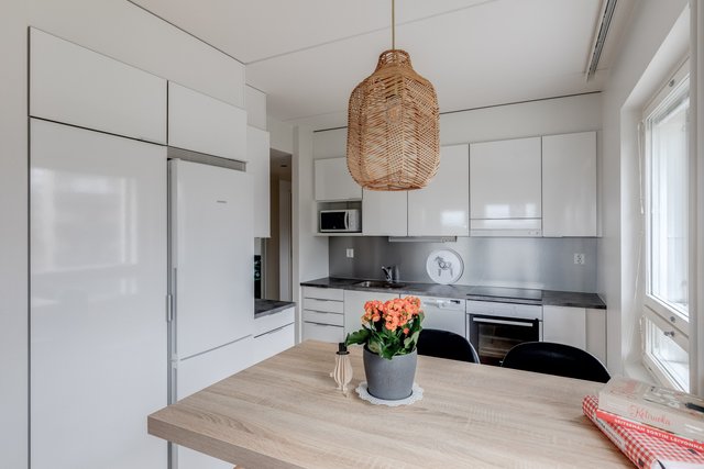- Jääkaappipakastin, liesi, liesituuletin, ja astianpesukone