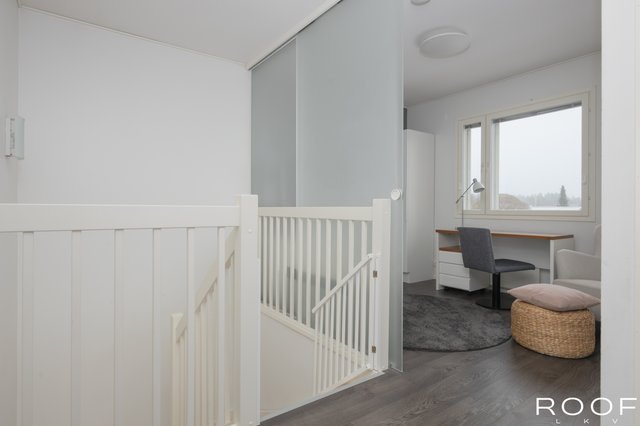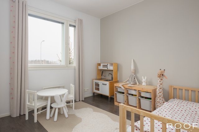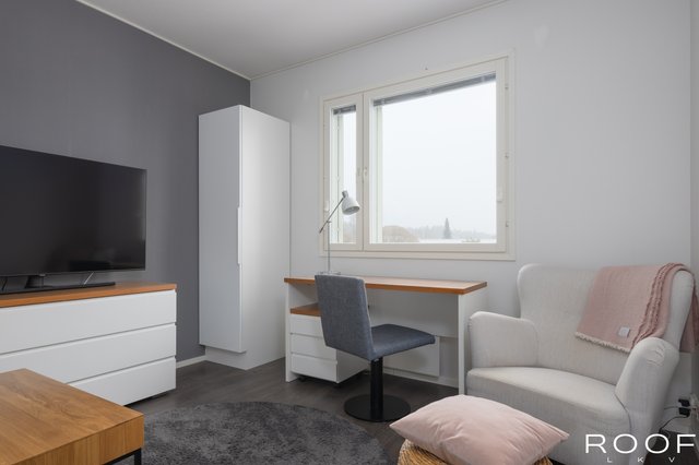 - Makuuhuone 1 Varustus: Kaapisto Seinämateriaali: Maali Lattiamateriaali: Laminaatti Makuuhuone 2 Varustus: Kaapisto Seinämateriaali: Maali Lattiamateriaali: Laminaatti Makuuhuone 3 Varustus: Kaapisto Seinämateriaali: Maali Lattiamateriaali: Laminaatti Makuuhuone 4 Varustus: Kaapisto Seinämateriaali: Maali, Tapetti Lattiamateriaali: Laminaatti