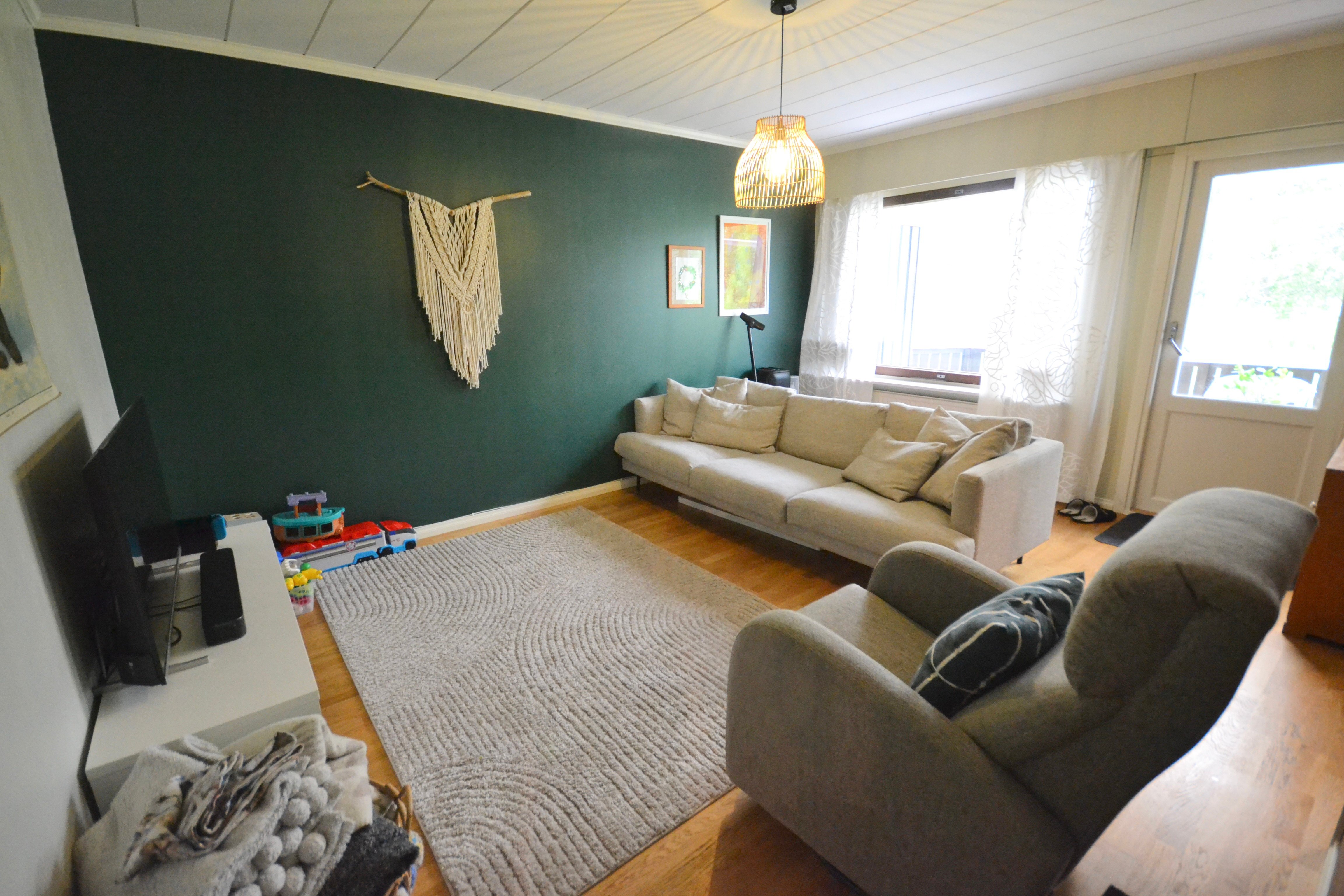 Aivan ihastuttava saunallinen kolmio kivalla katetulla terassilla ja suojaisalla pihalla. Kodikas rivitalohuoneisto suositulta asuinalueelta, koulun ja palvelujen läheisyydessä.