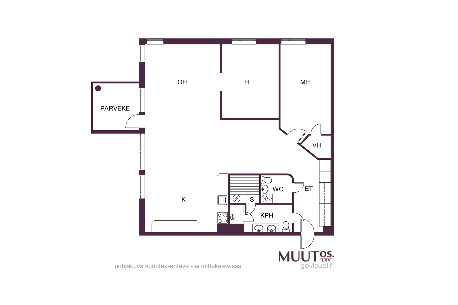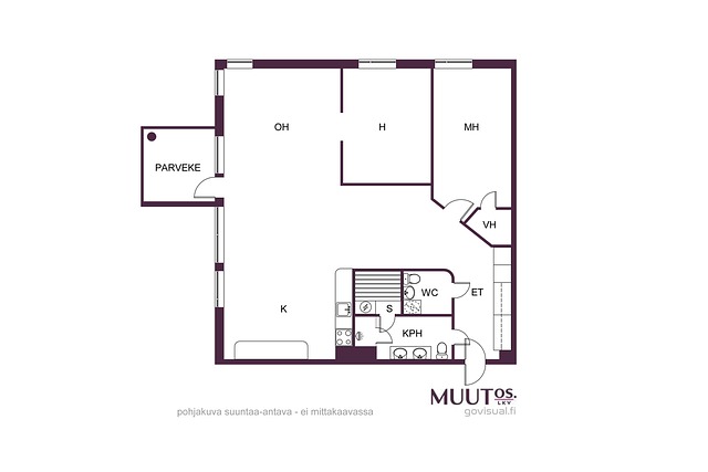 - Yhtiön huoneistojen pinta-aloja ei ole tarkistusmitattu. Mitattaessa ne saattavat olla ilmoitettua suurempia tai pienempiä. Hinta ei ole pinta-ala perusteinen. Yhtiöjärjestyksen mukainen huoneistoselitelmä: 3-4h+k+s.