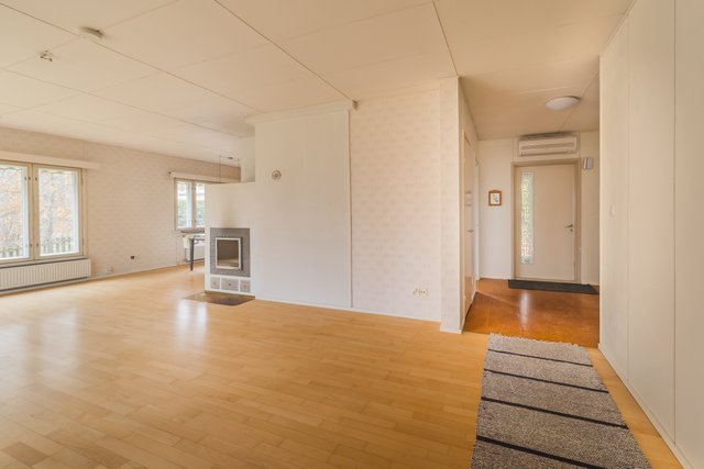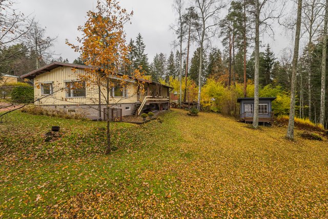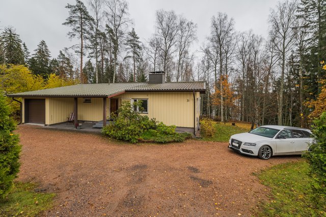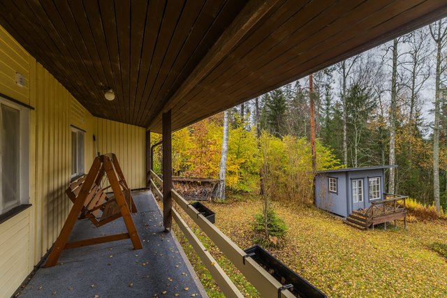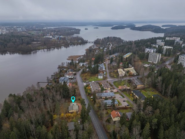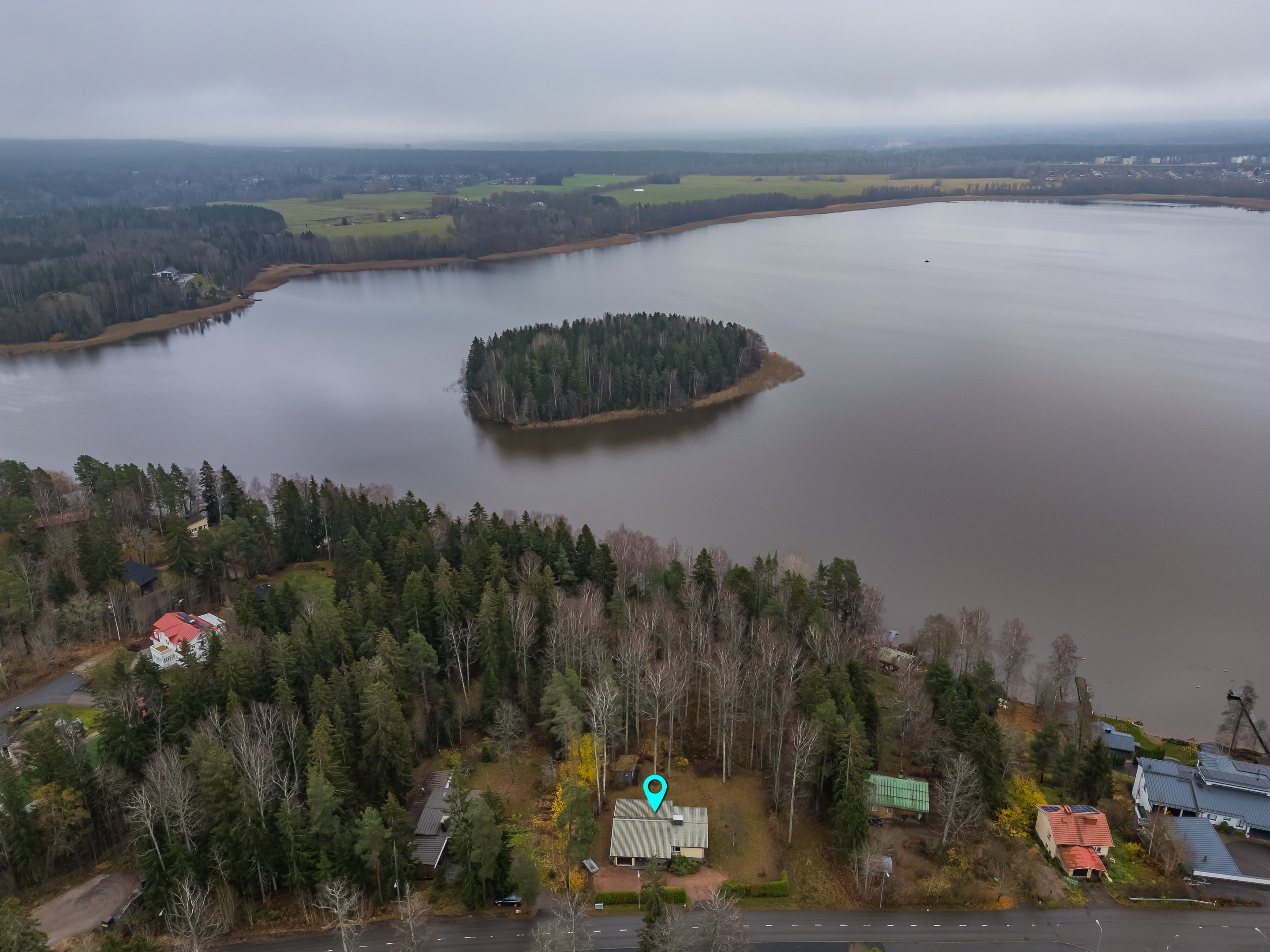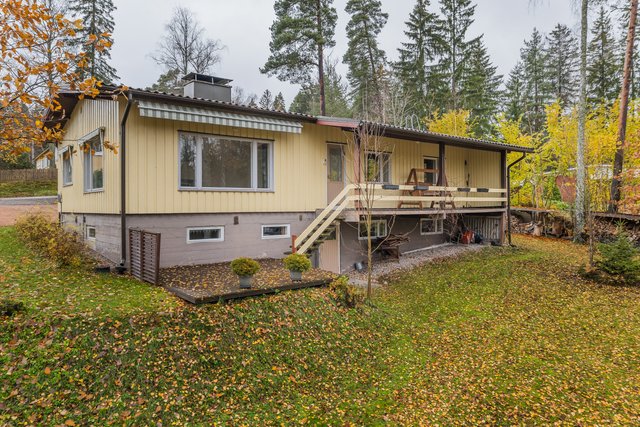 Tämän rinteessä sijaitsevan talon isoista ikkunoista avautuu upea maisema, joka vaihtuu vuoden ajan mukaan. Talon asuinkerroksessa on todella tilava ja valoisa olohuone, vuonna 2014 uusittu keittiö, 2015 uusittu kylpyhuone sekä kaksi makuuhuonetta. Kellarikerroksesta löytyy lisäksi puulämmitteinen sauna ja pesutilat, iso askarteluhuone (toiminut myös makuuhuoneena) sekä runsaasti säilytys- ja monitoimitiloja. Bonusta on myös autotalli talon yhteydessä sekä ihastuttava huvimaja kesäiseen kahvitteluun, lepohetkiin tai vaikka yöpymiseen. Pihapiiri on suojaisa ja vehreä ja katettu parveke sekä terassi suuntautuvat järvelle päin.