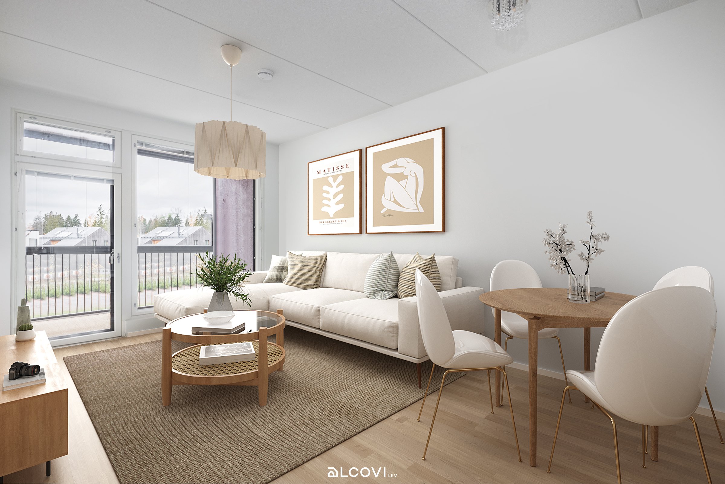 Aikaa kestävät sävyt, käyttöä kestävät materiaalit ja erinomaisen toimivaksi hiottu pohjaratkaisu ovat tämän kompaktin kaksion parhaita puolia! Rauhalliset sisäpihanäkymät viimeistelevät viihtyvyyden, ja ilmava huonekorkeus luo tilantuntua.