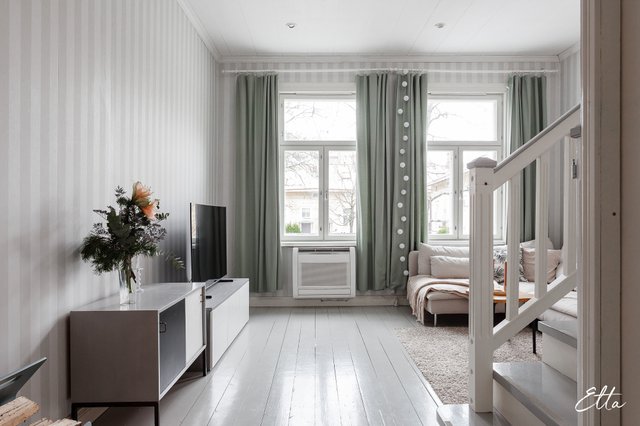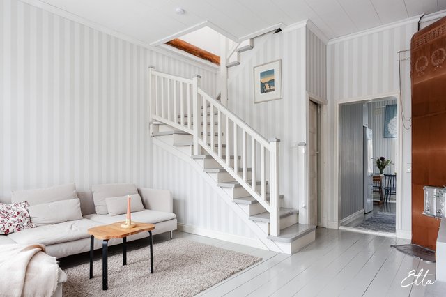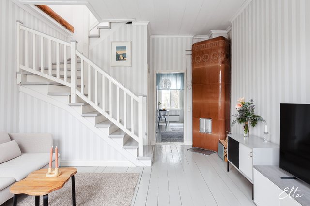 Tämä puutaloasunto sopii sinulle, joka arvostat tunnelmaa, kodikkuutta ja klassisia yksityiskohtia. Kodin parhaimpia puolia ovat sen kauniit pintamateriaalit, korkea huonekorkeus ja upea kakluuni, joka luo olohuoneeseen lämpimän ja arvokkaan tunnelman. Valoisa yläkerta tarjoaa joustavuutta arkeen, avoin tila muuntautuu helposti toiseksi makuuhuoneeksi, työtilaksi tai vaikkapa rauhalliseksi lukunurkkaukseksi. Asunto kutsuu viihtymään ja nauttimaan vanhan puutalokodin charmia.