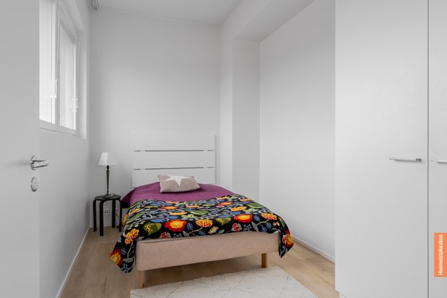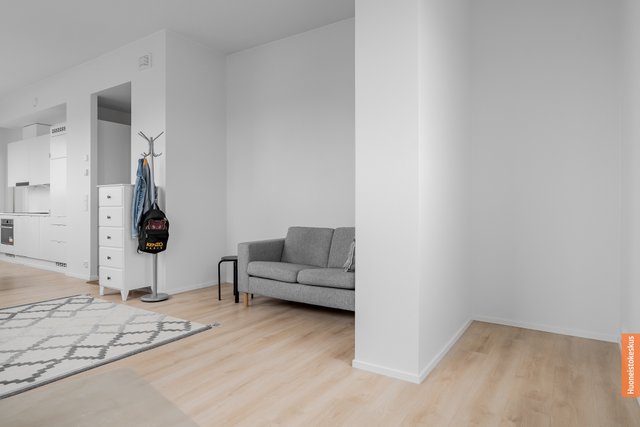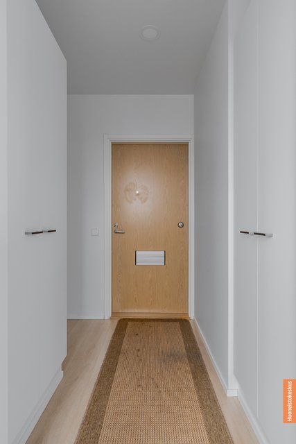 Kyseessä on kerrostalon päätyasunto, jonka pohjaratkaisu on poikkeava massasta, mutta hyvin valoisa ja avara. Avara siksi, että olohuone yhdistyy saumattomasti moderniin keittiöön. Valoa asuntoon tulee taas useammastakin ikkunasta. Ikkunat ovat normaalia korkeammalla, jolloin sisustaminen on kuitenkin helppoa. Koko asunnossa on lattialämmitys. Lisäksi asunnossa on erillinen kodinhoitohuone, jossa on tilaa pesutornille.