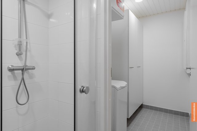- Pesukoneliitäntä, lattialämmitys, lattiakaivo, pyykkikaapit, ja tila pesutornille