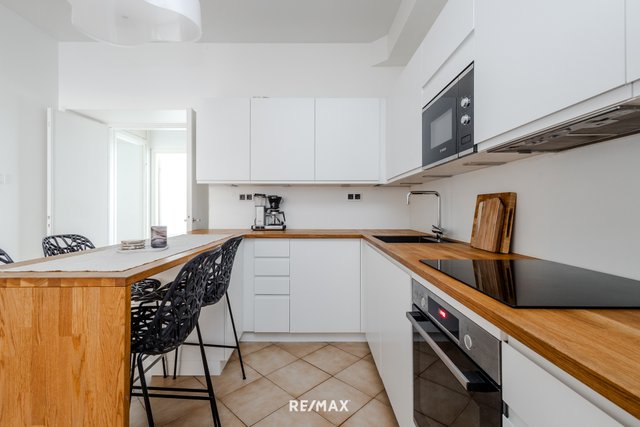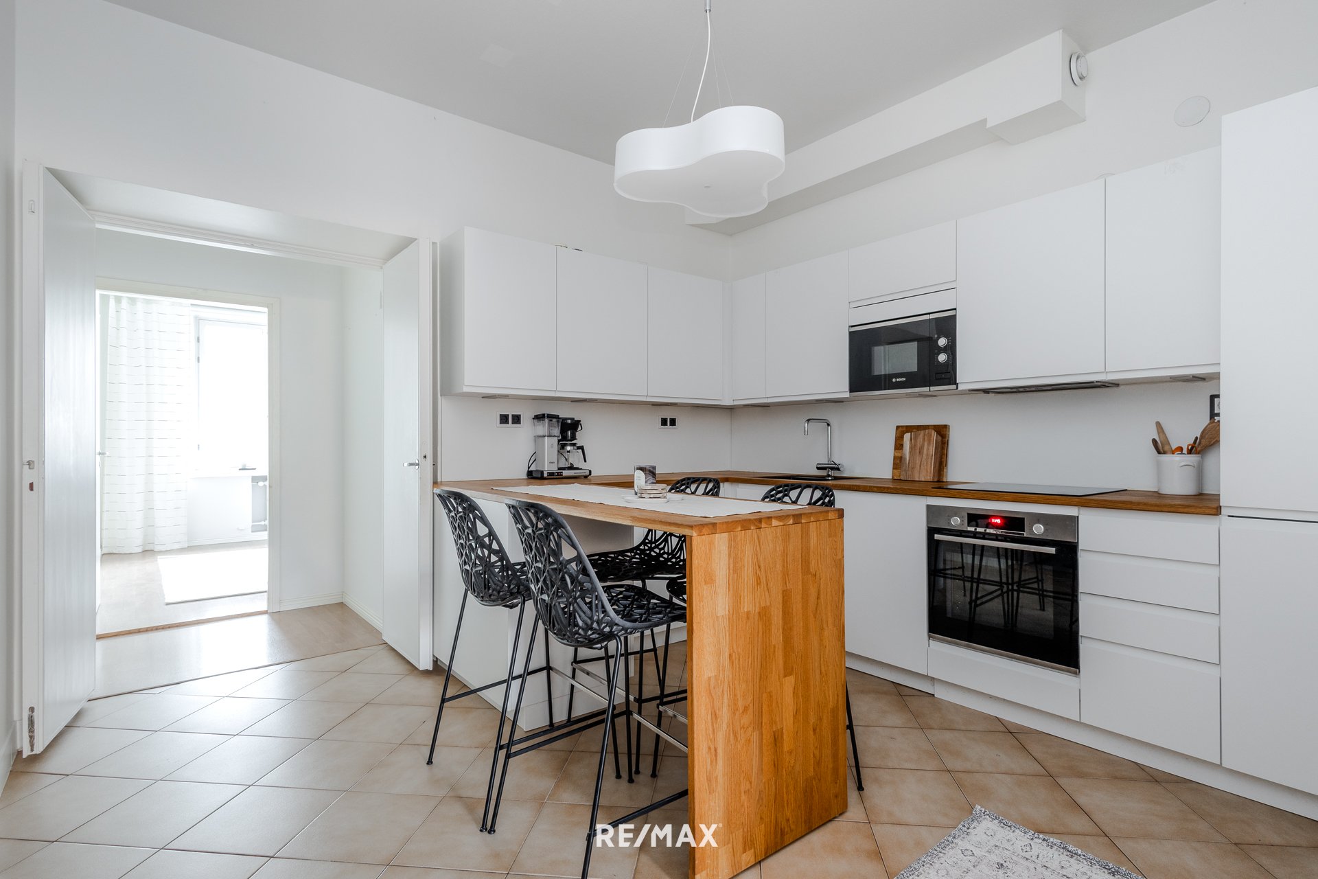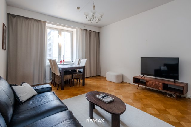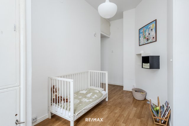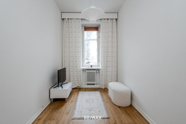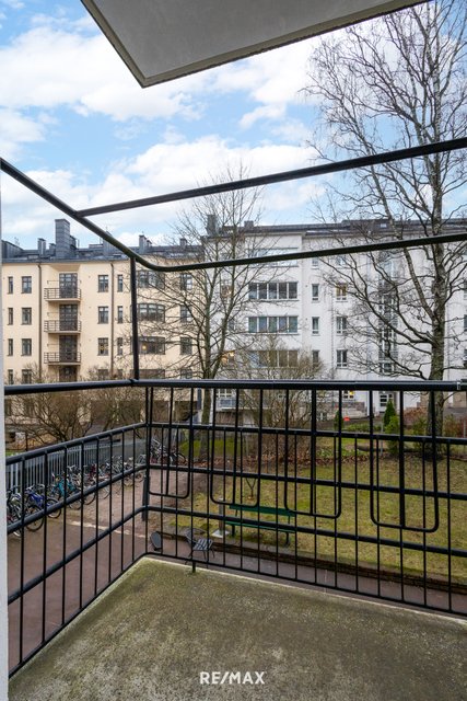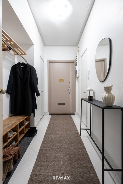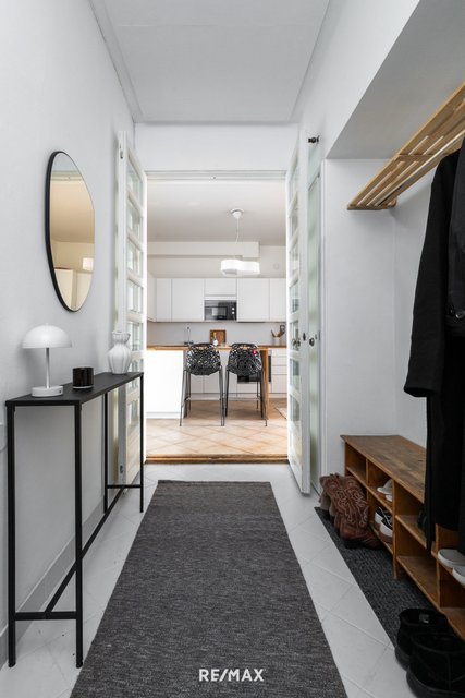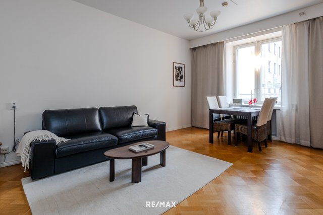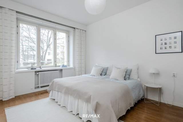 Toisen kerroksen tunnelmallinen ja rauhallinen kaupunkikoti, jonka pohjaratkaisu toimii loistavasti. Halliin rakennetussa keittiössä on integroidut kodinkoneet, puiset työtasot sekä kätevä baaritaso, joten lasku- ja säilytystilaa on reippaasti. Olohuone on heti keittiön vieressä ja sen ikkunasta aukeaa kaunis esteetön näkymä Döbelninkadulle. Olohuone onkin huoneiston ainoa tila, jossa on ikkunat Runeberginkadun puolelle, eikä tänne kuulu juurikaan liikenteen ääniä.